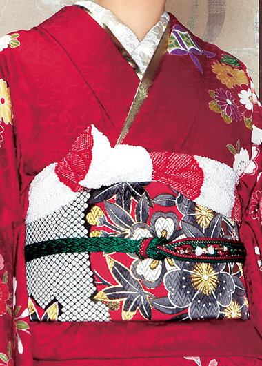 優美で華やかな花々が、落ち着いた赤に映える正統派スタイル。